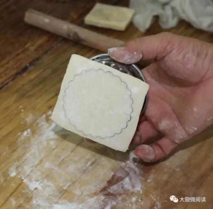 2.用圆环模具扣成带花纹的圆片。