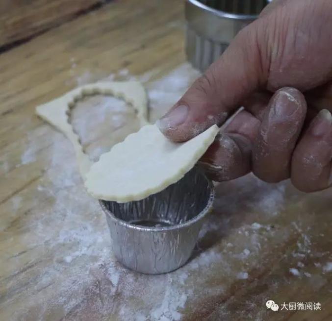 3.摁入高桶蛋挞盏中。