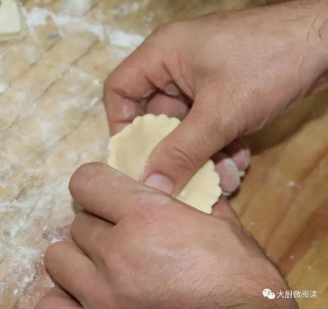 4.中间舀入花生芝麻馅或猪肉韭菜馅。