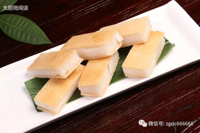 在柔软弹牙的伦教糕两面盖上酥松香脆的糯米片“被子”,大大丰富了口感,这款新颖的脆皮伦教糕一经推出便受到食客喜爱,每月至少能卖出1000份,毛利可达80%以上。糯米片制作: