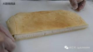 5.切去一半糯米片,将其盖在伦教糕上。