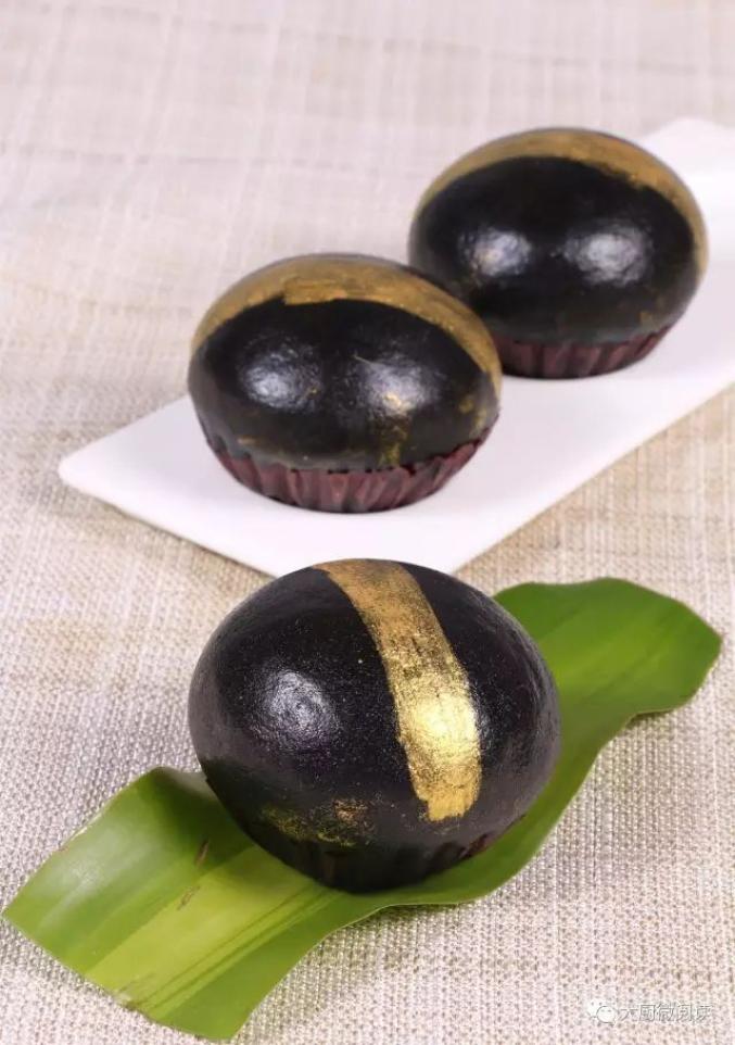 这款包子从馅到皮都有亮点:外皮以竹炭粉和面,刷一道金粉,黑配金的外观耀眼夺目;馅料则告别传统的奶黄流沙馅,而是以葡萄糖浆、芝士粉和瓜子仁调制,奶香、微甜、微咸,夹杂瓜子的脆香,美味独具。
