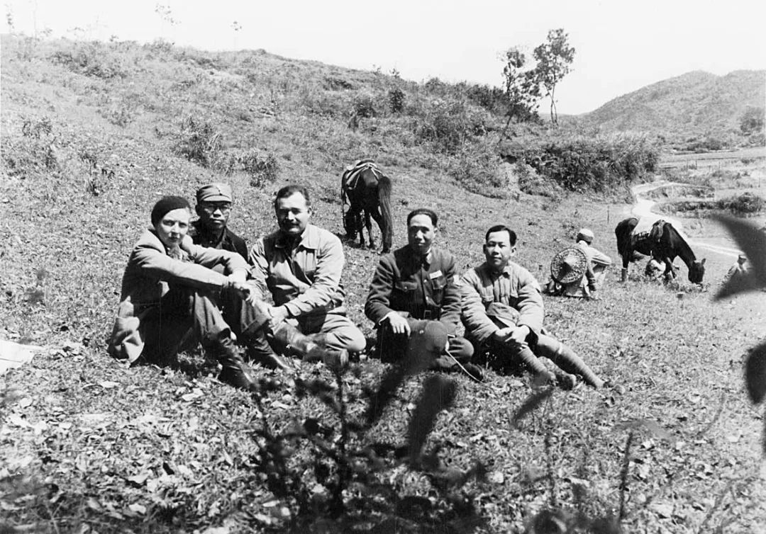▲1941年,海明威(左三)来到中国第七战区韶关附近。图源:网络