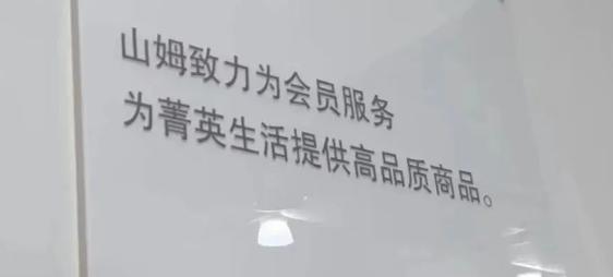 山姆门店的大白墙上,醒目的标语写着“山姆致力为会员服务,为菁英生活提供高品质商品”;