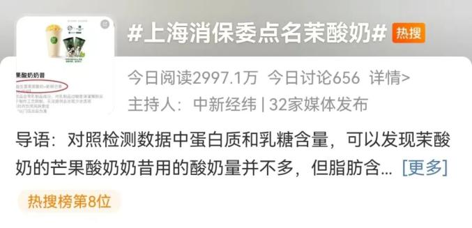 “含量高得很奇怪”,茉酸奶一款产品遭官方点名提问“加了什么”