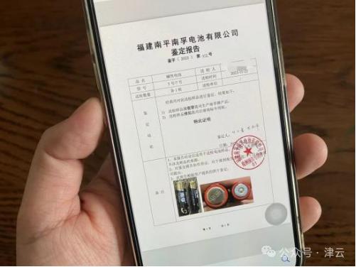 接下来的两天,郑先生通过南孚官方店铺找到了南孚厂家的联系方式,然后向厂家提供了个人信息、购买订单截图,填写了开具假货报告申请,又按照厂家要求拍摄了假电池照片后,拿到了南孚厂家开具的鉴定报告。