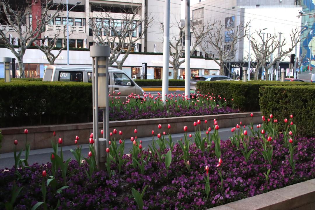 通过路两旁的绿化带植物、花卉品种造型的变化,各种艺术雕塑的布置就能感受得到静安对城市建设,是非常舍得投入成本的,但同时也是用心的结果