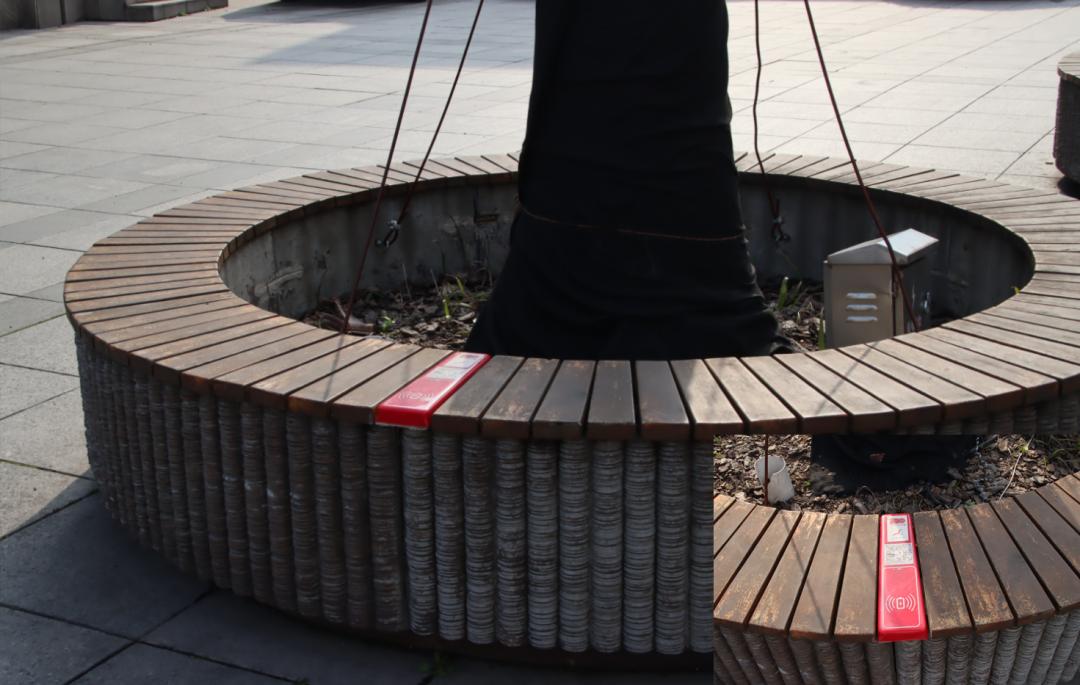 我们会看到它在道路两旁的树木下,安置了免费的无线充电装置,希望逛街的人可以停留的更久