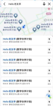 便可以在找到各个老友亭的具体位置,最密集的地方,一公里内便有7个点位