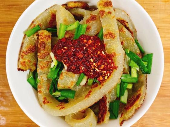 天水也有这样一道“洋芋凉粉”——然然(ran ran),将土豆淀粉放开水在锅中,搅拌至半透明出锅放凉,切块凉拌,口感绵软。 在天水、陇南,娃娃们还喜欢吃洋芋丸子,乘热蘸蒜汁吃,柔筋筋的,非常弹牙滑嫩。如果吃不完,还可以切成条或者片儿,下顿炒着吃,又是别样滋味。