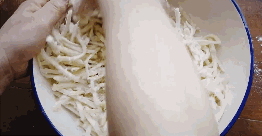 陇南人家与洋芋打交道的方式更是“勇武”:洋芋搅团——经过洗、煮、剥、凉、打、调等六七道工序,至少要有两个人配合,把洋芋反复击打,直到洋芋团可以拉丝。费时费力,但这样做出来的洋芋搅团柔韧劲道,是真的好吃。