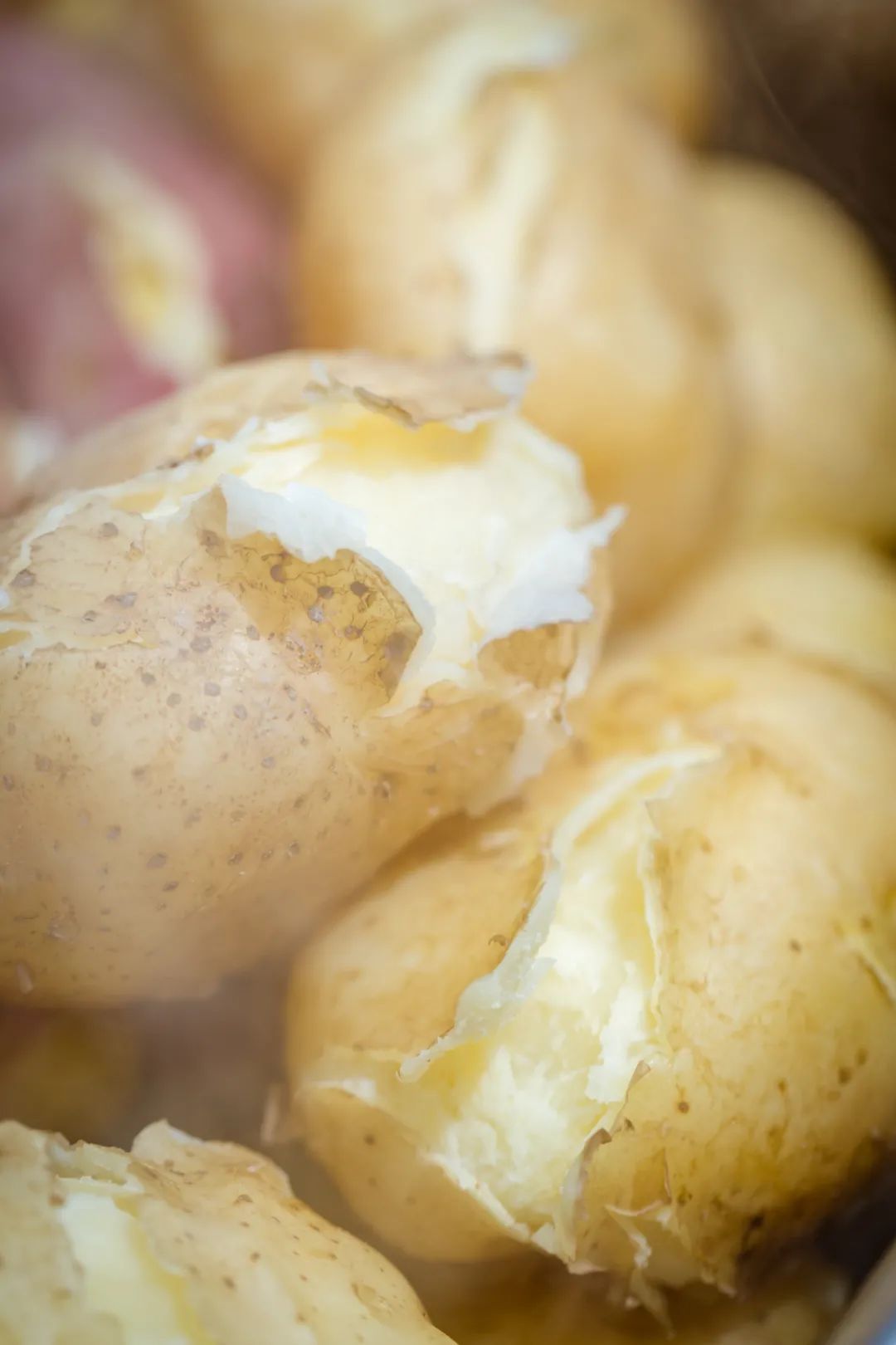煮洋芋,大人喜欢“炸开花”的,小孩喜欢带焦巴的,多了一丝焦香。绵密的口感,最朴素的味道,也最温暖人心,再来点小咸菜,或者嫩葱,或者是从浆水缸里刚刚捞出来的酸菜,几颗洋芋下肚,一顿饭也就解决了。