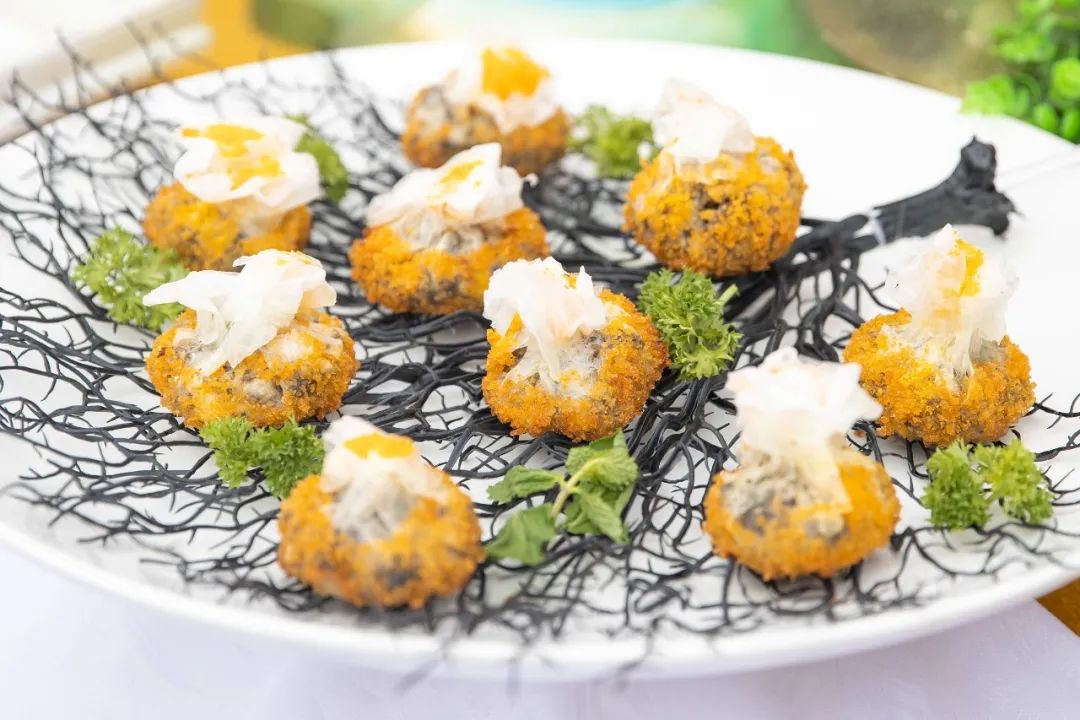 马铃薯大会上展出的马铃薯蛋挞、马铃薯油圈、马铃薯菜丸。图/视觉中国