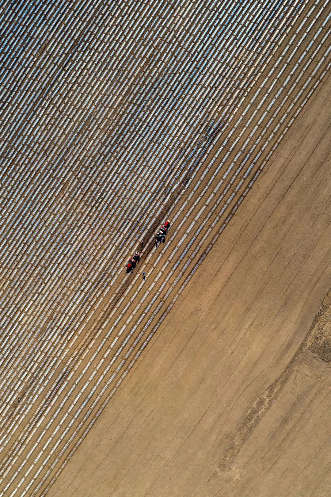 甘肃金昌,机械化种植马铃薯,为大地绣上花纹。图/视觉中国
