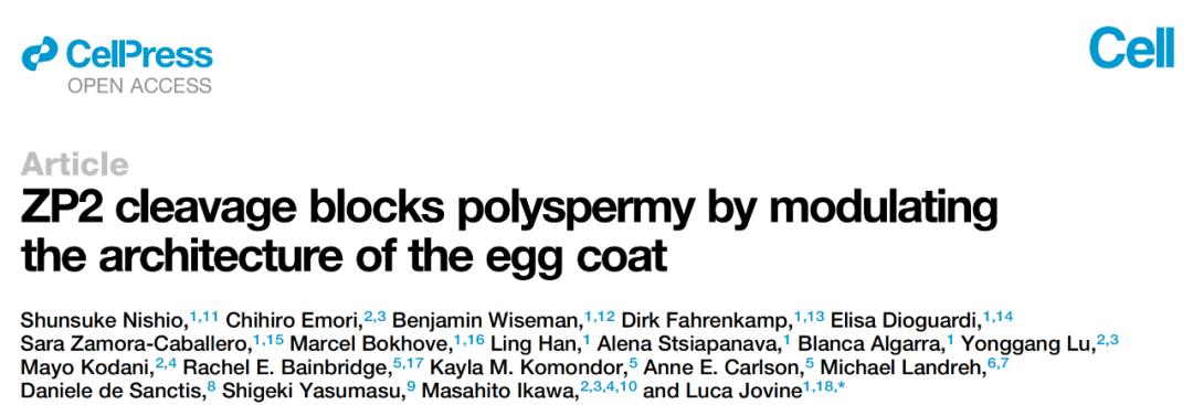 2024年3月14日,瑞典卡罗林斯卡学院和日本大阪大学等机构的研究人员在 Cell 期刊发表了题为:ZP2 cleavage blocks polyspermy by modulating the architecture of the egg coat 的研究论文。