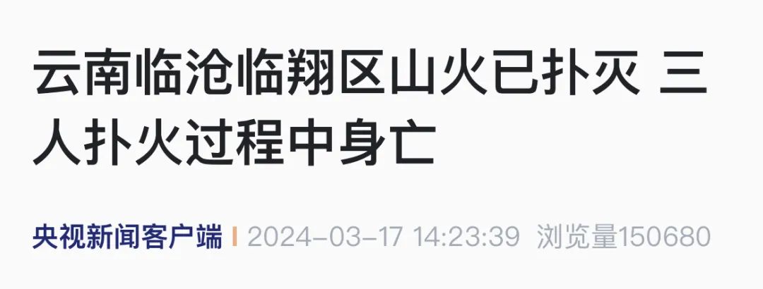 此前,总台记者从当地宣传部门获悉,云南省临沧市、文山州两地突发山火,有人员伤亡。原标题:《云南两地突发山火!一地明火全部扑灭,3人遇难》