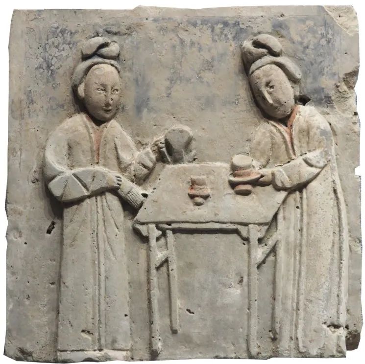 本以为注得也算尽心了,今取读《诗歌名物百例》,再参其《两宋之煎茶》《关于分茶与斗茶》《两宋茶事》等文,才知所注或有不确,或欠深细。如前人解细乳为茶名或谓乳义为研磨真的不确;宋人以将茶泡制成白色为贵的表述亦不算确当;司马光语当指煎、点前之茶色,用在此处未必恰切;宋时多为点茶,分茶不与煎茶、点茶并列,而是点茶的别名,或为点茶的一种技巧。还有,观文中所列陕西历史博物院所藏北宋砖雕等一件文物和数帧配图,分茶的工具与程序更可了然:茶臼碾磨茶饼至细末,小勺舀取茶末调膏于盏中,银瓶以沸水冲点,茶筅或茶匙击拂茶汤幻成图纹。若在注释中添此数句,更有助进入具体的诗境。