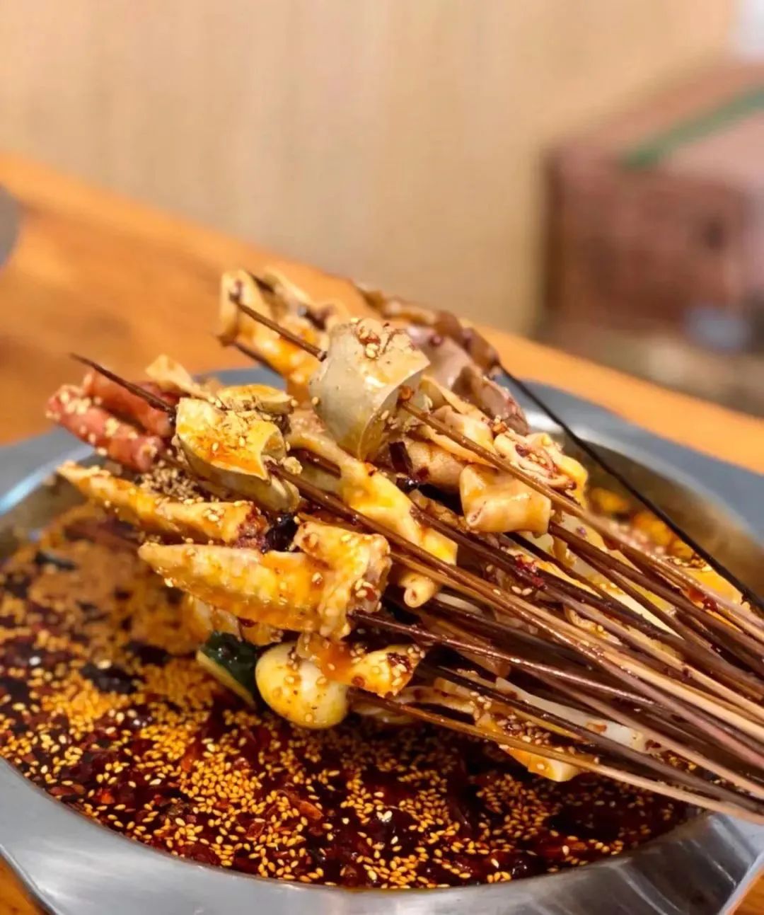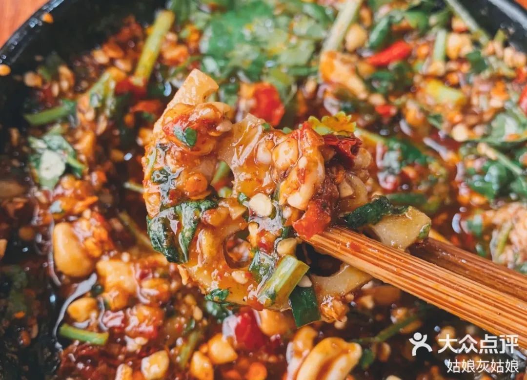 鲜亮的红油上面铺着满满一层芝麻,看起就已经非常诱人了。
