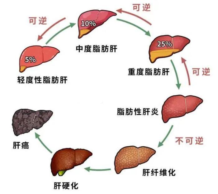 《自然》子刊《胃肠病学和肝脏学自然评论》发表的综述,减重10%可以帮助逆转纤维化。减肥不应急于求成,每周减重不超过0.5到1千克。
