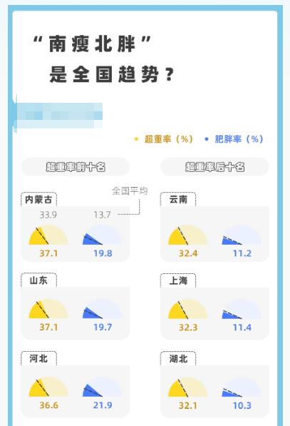 2023年中国肥胖地图中内蒙古是超重比例