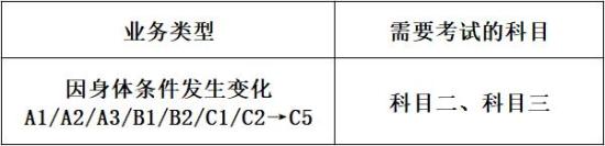 已持有大型客车、重型牵引挂车、城市公交车、中型客车、大型货车、小型汽车、小型自动挡汽车准驾车型驾驶证的机动车驾驶人身体条件发生变化,不符合所持机动车驾驶证准驾车型的条件,但符合残疾人专用小型自动挡载客汽车准驾车型条件,申请变更的,应当考试科目二和科目三。(即免考科目一)