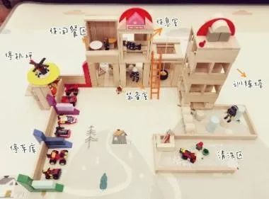 我们和亨仔相处的方式有很多种,其中最好的一种就是陪他一起玩,并且心无旁骛。玩耍不仅可以释放亨仔的能量,还为我们提供走进他内心世界的契机。亨仔一直钟情于消防主题的各种游戏,我想到用阿基米德创客积木来和小家伙建构场景。搭建前,和他一起共读消防主题绘本,熟悉消防员工作,共情消防员的使命,再和他研究我们自己的消防局,划分区域,最后模拟场景展开救援行动。有了第一次的探玩,至此,场景游戏让我们沉浸其中,乐此不疲,我们玩起更多的绘本拓展,在绘本故事支撑下,进一步创演情节,也尝试动手复刻绘本里的角色形象。一次次的专注陪伴,我竟也意外收获了亲子时光的满足和快乐。