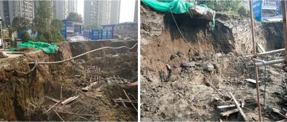 直接原因分析:基坑(沟槽)边坡放坡坡率不符合至少为 1:1.5 的设计要求,实际放坡坡率约为 1:0.35。