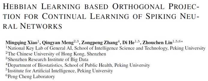 论文题目:Hebbian Learning based Orthogonal Projection for Continual Learning of Spiking Neural Networks论文地址:https://openreview.net/forum?id=MeB86edZ1P