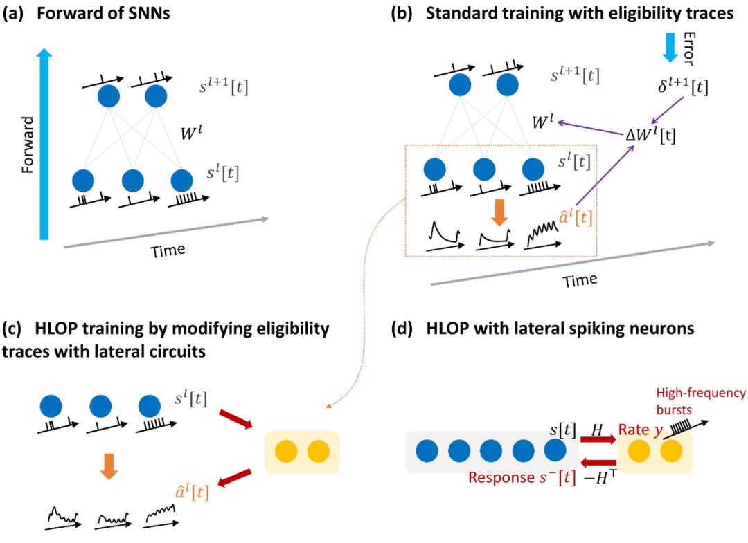 图 2:HLOP 与 SNN 在线训练算法结合示意图与 SNN 训练相结合