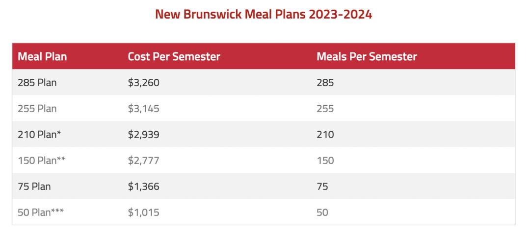 注意哦:*住在住宿舍的一年级学生必须至少有 210 meal plan。
