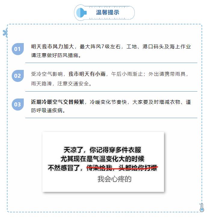 好消息是:近日我市的暖湿天气得到缓解,大家的“潮人-回南天”危机解除;坏消息是:体感变凉还有小雨。