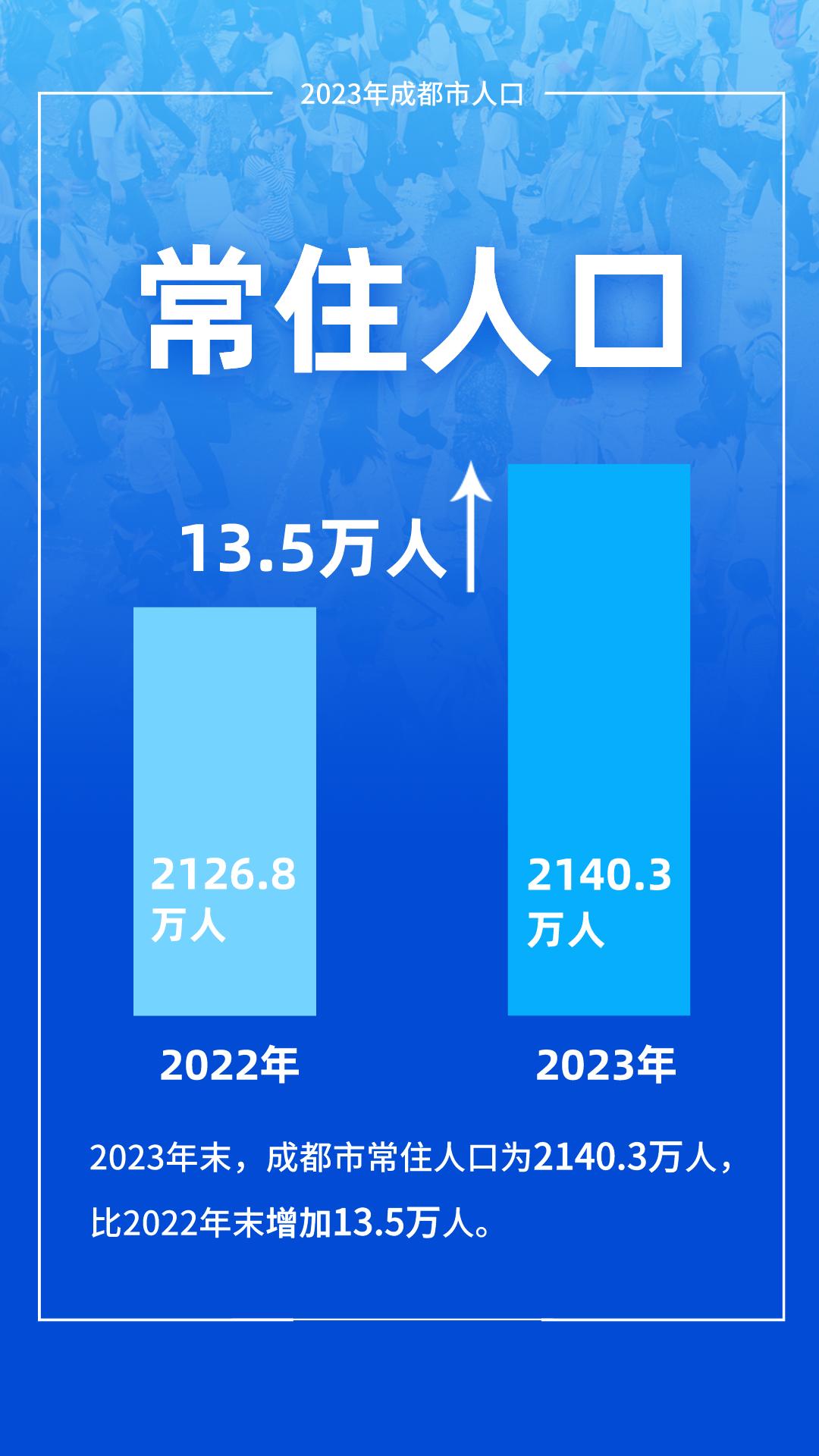 2023年末,成都市常住人口为2140.3万人,比2022年末增加13.5万人。