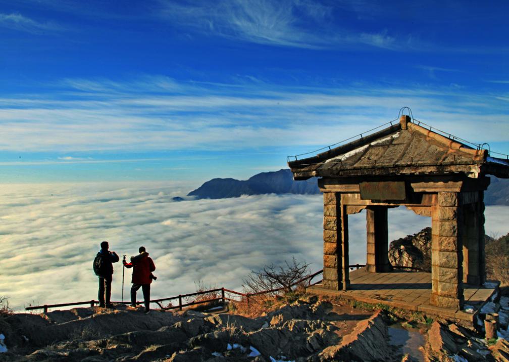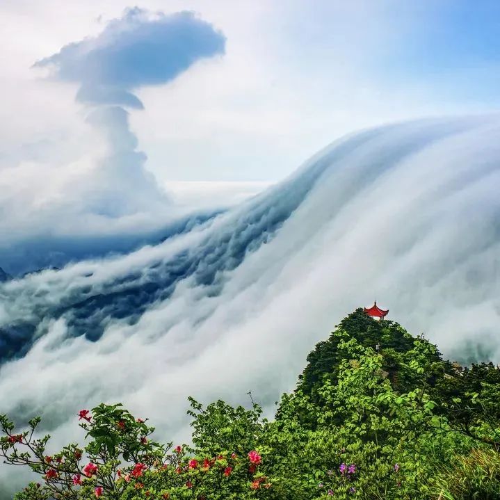 最佳观赏点:金顶以及往天路方向,白鹤峰、金顶驿站的平台处,情人花廊、中庵往右边登顶的徒步路线、云中雾客栈门口鹰潭龙虎山