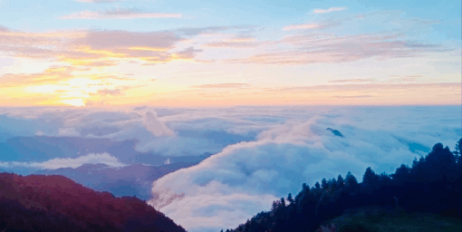 云海在日出日落的渲染之下