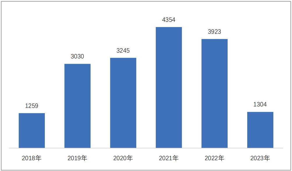 图一 2018年8月20日至2023年6月30日上海金融法院证券虚假陈述责任纠纷收案数量(单位:件)