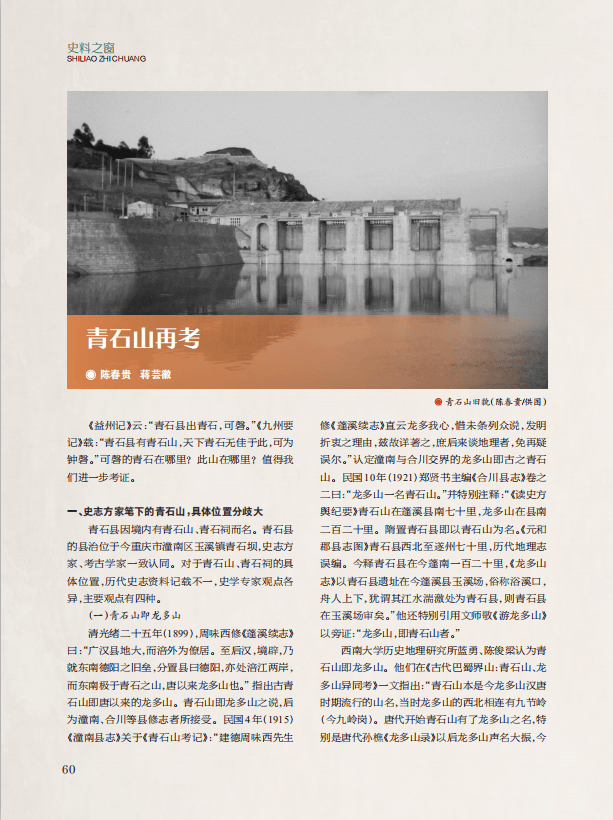 事实上,《华阳国志》《九州要记》《益州记》《元和郡县图志》《太平寰宇记》《舆地纪胜》《读史方舆纪要》《蜀中广记》等地理方志中,先后零散记载了青石山的区域属地、水路距离、地貌特征、巴蜀分界及民间传说。