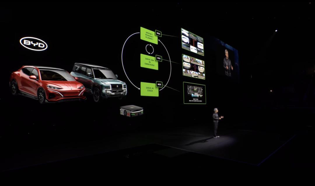 在本次 GTC 的主旨演讲中,黄仁勋亲自宣布的一个与汽车行业直接相关的重大动态是:全球最大的电动汽车生产商比亚迪扩大了与英伟达之间的合作,并且选择基于 DRIVE Thor 来构建它的下一代智能电动车型。