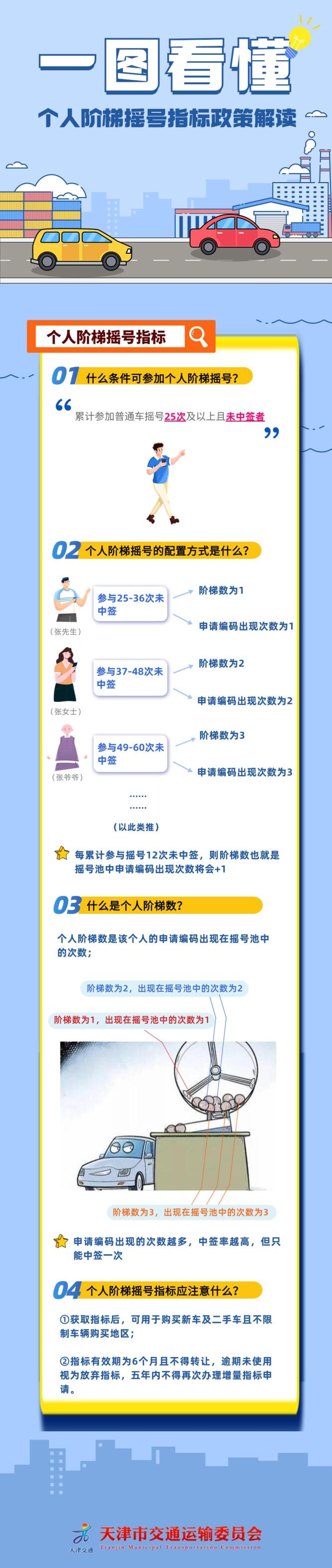 个人阶梯摇号活动其他注意事项详见调控网站公布的《关于开展个人阶梯摇号活动的通告》,市民如有疑问可拨天津市小客车调控咨询电话022-12345。