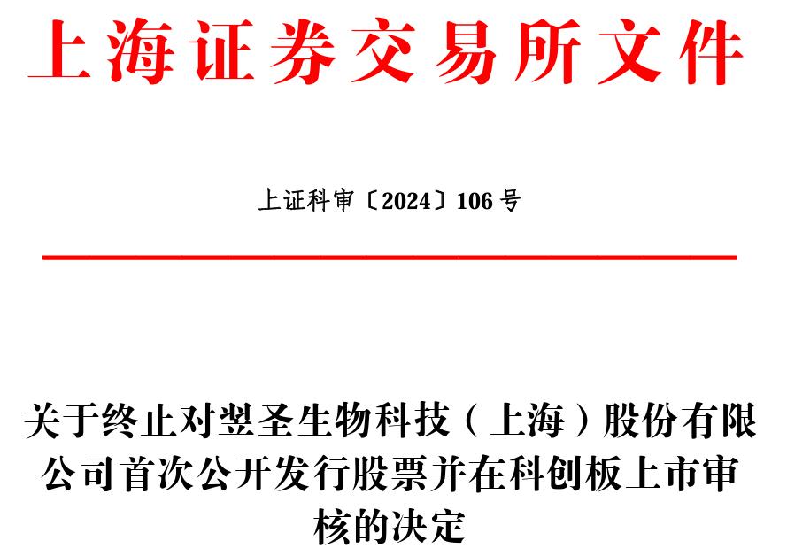 3月20日,上交所决定终止翌圣生物首次公开发行股票并在科创板上市的审核,原因是翌圣生物及其保荐人撤回发行上市申请。