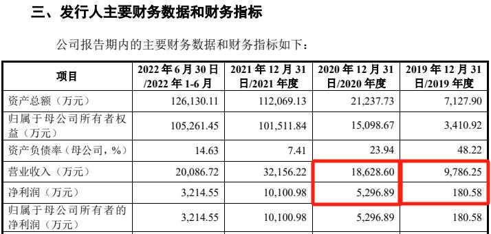 翌圣生物2019年营收、净利润,分别为不足1亿元,净利润180.58万元;2020年、2021年分别实现营收1.86亿元、3.22亿元,净利润5296.89万元、1.01亿元。