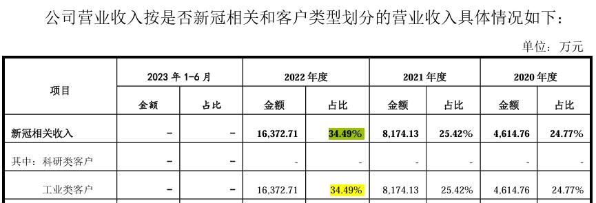 2020年至2022年,翌圣生物与新冠相关的产品销售收入,分别为4614.76万元、8174.13万元和16372.71万元,占当期营业收入比例分别为24.77%、25.42%和34.49%。