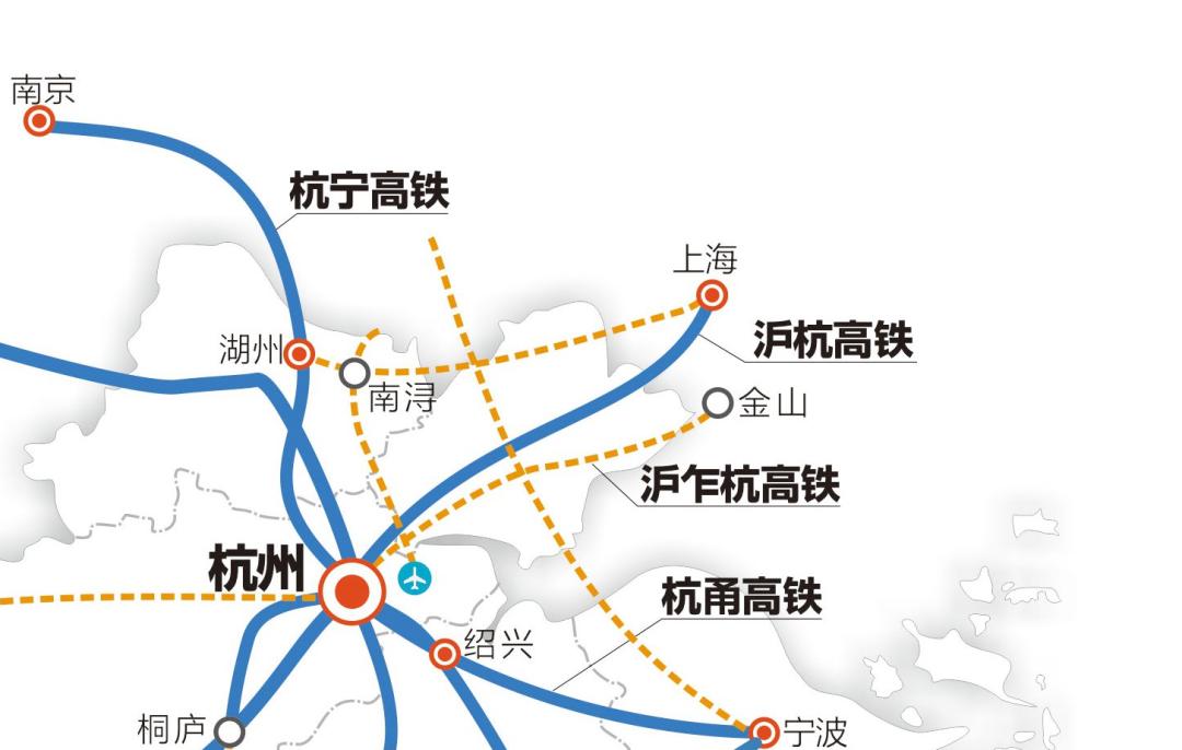 沪杭区域高铁走向大致示意图末班车一站直达杭州东站