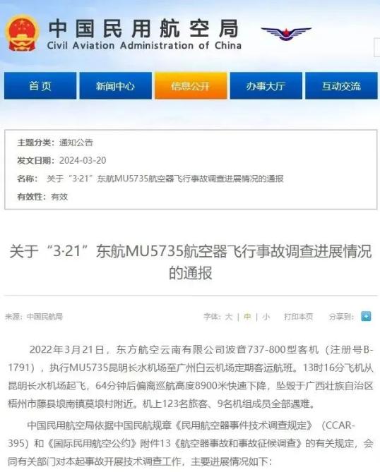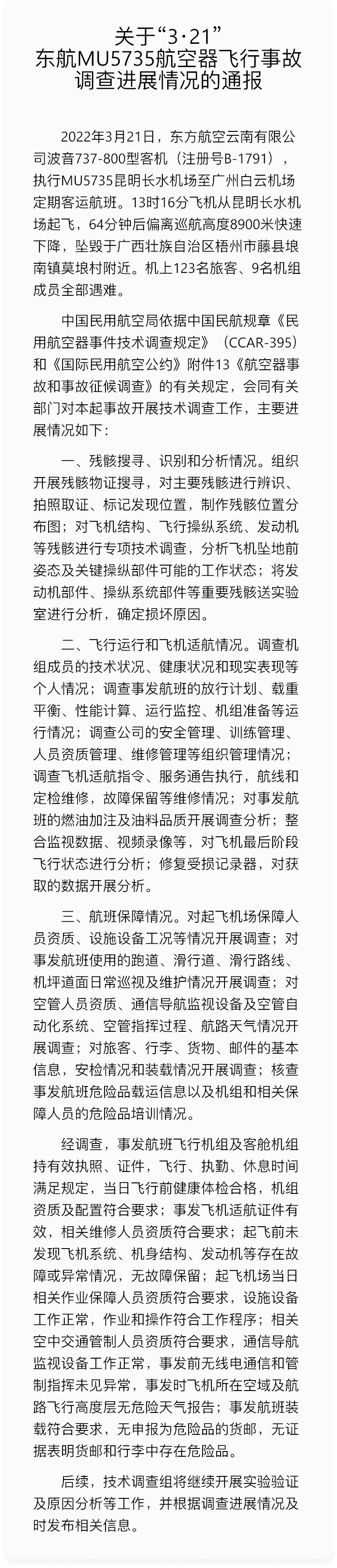 昨日,中国民航局针对“3·21”东航MU5735航空器飞行事故情况,给出了最新调查进展的通报(通报原文见文末)。