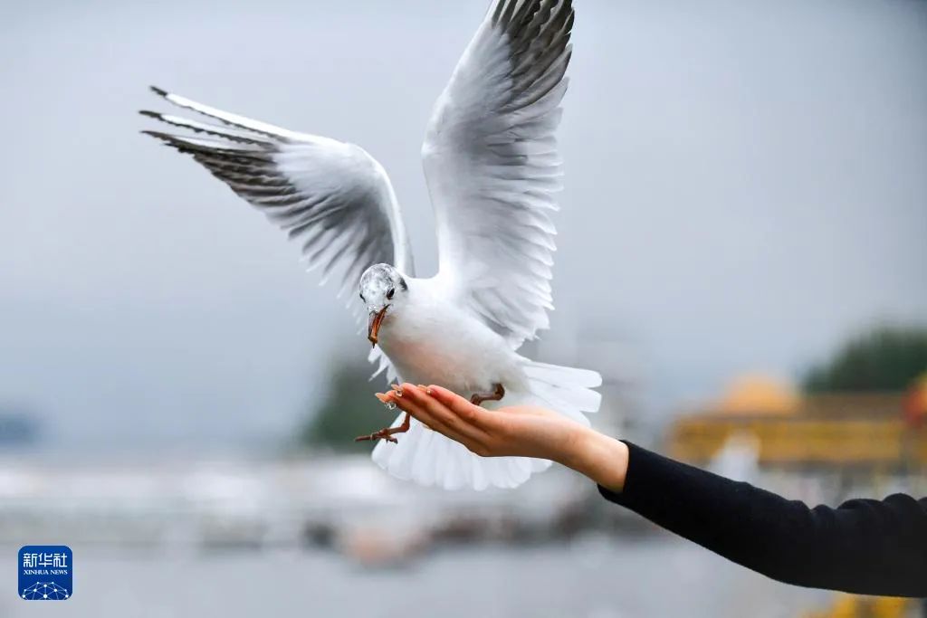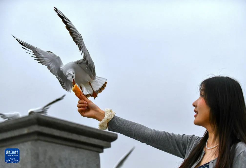 3月20日,游客在昆明海埂大坝喂红嘴鸥。新华社记者 王静颐 摄昆明人与红嘴鸥的缘分,始于1985年的一次邂逅。这年冬天,红嘴鸥第一次大规模造访春城。“当时红嘴鸥还很胆小,不敢靠近人类,但市民对它们非常热情,把自己吃的油条、馒头拿来投喂。”昆明鸟类协会名誉理事长王紫江说,初次相遇,昆明人就让这群“陌生来客”感受到了满满的爱。
