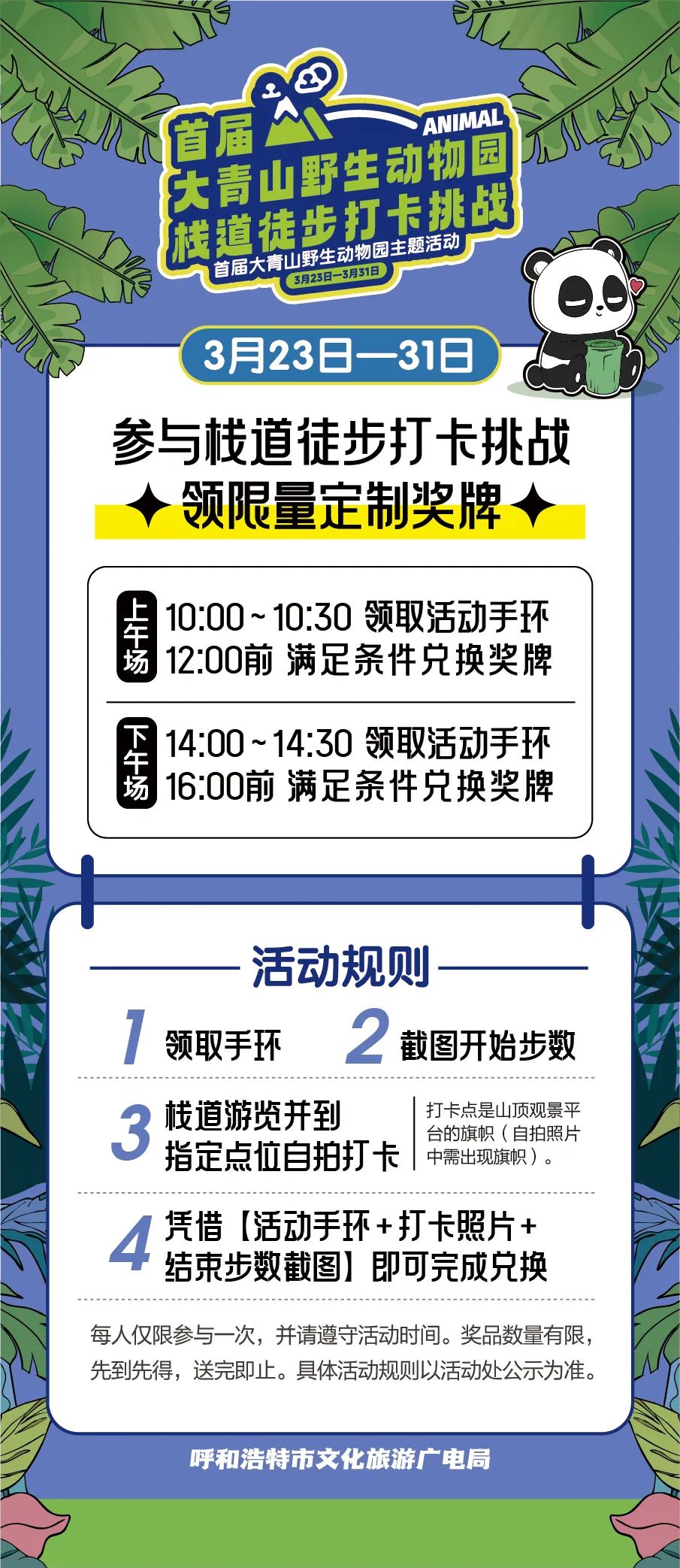 活动时间:3月23日—31日上午:10:00-10:30 领取活动手环,12:00前兑换奖牌。