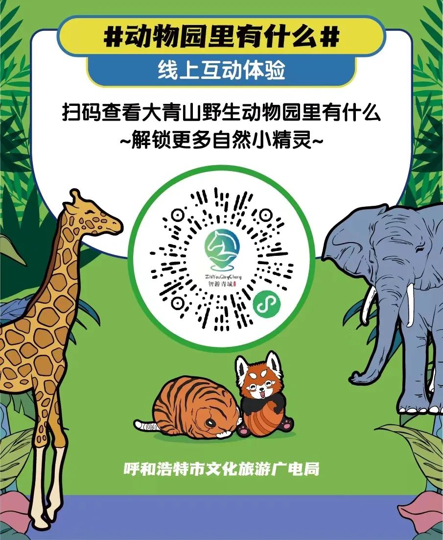 “动物园里有什么”互动体验亮点:通过“智游青城”小程序搭建起线上科普平台,手机扫码就能一键了解大青山动物园里的每一种小动物;同时,活动期间在园区里增设了流浪动物公益爱心点位,参与公益活动献爱心。