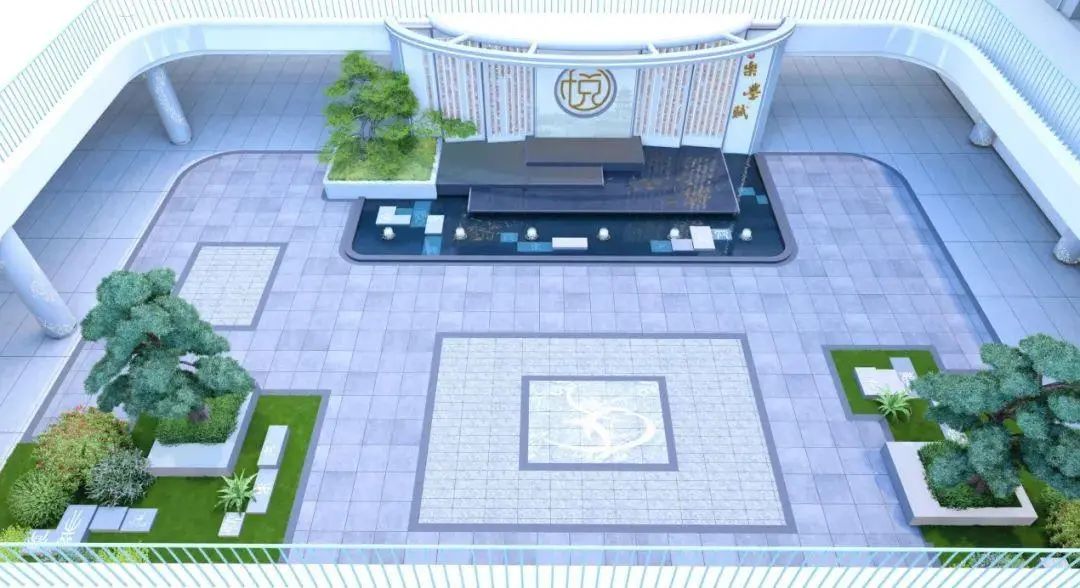 在内部空间提升方面,整体风格以现代简约为主,凸显实用性和温馨关怀的特点。比如连廊空间将增加休闲座椅、班级文化和个人作品展示墙,打造休闲交流平台;行政楼、综合楼内部延续灰白色调,与立面风格相呼应,增加灯带、格栅吊顶、金属雨棚等。