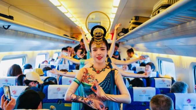 另外,游览麦积山石窟、天水古城、南宅子等热门旅游景点。此外,兰州铁路局兰铁国旅公司为营造游客体验“天水麻辣烫”的浓厚氛围,还对车体外皮及车厢内部以天水麻辣烫为主题元素进行了装饰。接下来,兰州铁路局将根据游客需求热度,每周图定开行“麻辣烫”专列,打造“环西部火车游”+“天水麻辣烫”旅游品牌,让“小资源”持续释放“大效应”。