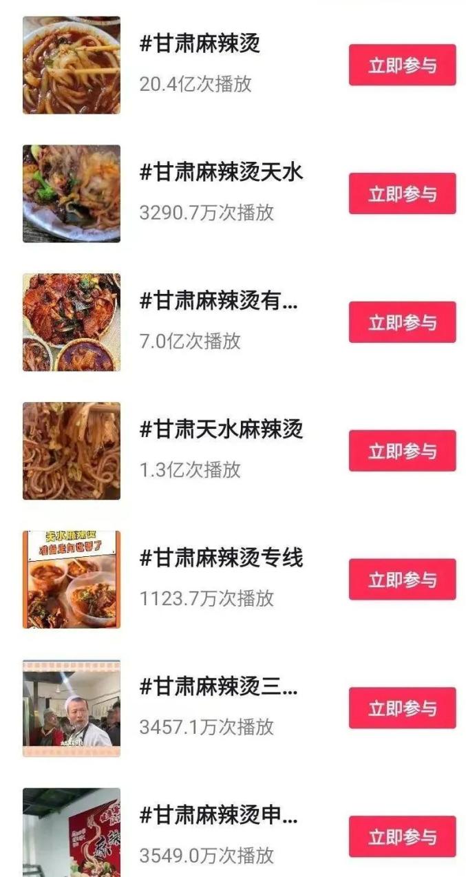 甘肃麻辣烫火爆全网,频频登上各大平台热门榜。抖音平台最新统计数据显示,关于“天水麻辣烫”“甘肃麻辣烫”的话题播放量持续走高,累计已突破20亿,相关话题多达上百个。新华每日电讯、央视新闻、央广网、人民网、半月谈、中国之声、新华快看等40多家中央及省级重点媒体也对甘肃天水麻辣烫进行了密集宣传报道。