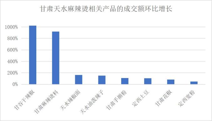 京东消费及产业发展研究院发布的《甘肃天水麻辣烫消费观察》显示,近两周,甘肃天水麻辣烫在京东上的搜索量环比增长4.8倍。天水麻辣烫相关产品中,甘谷干辣椒、甘肃麻辣烫调料的成交额环比分别增长超10倍和9.2倍,天水辣椒面、天水油泼辣子、甘肃手擀粉、定西土豆的成交额环比增长均超100%。定西宽粉、定西土豆、天水油泼辣子、天水辣椒面、甘肃花椒占据成交额前五名。